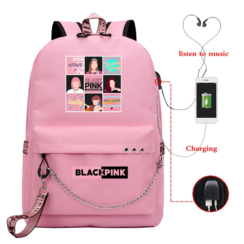 Kpop Blackpink Student Backpack With Usb Charging Port Fashion College Bag Continue To The Product At Th College Bags Backpacks Student Backpacks