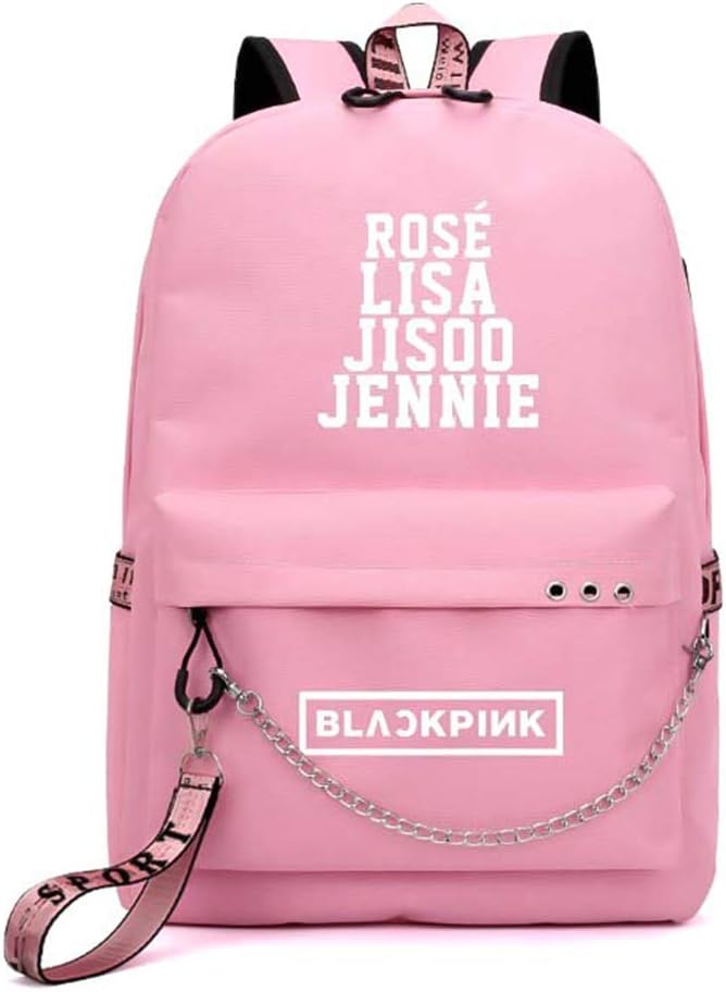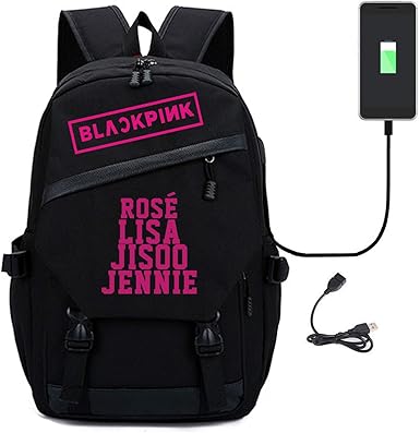 Amazon Com Dolpind Kpop Blackpink Backpack Schoolbag Bookbag Rose Jisoo Lisa Jennie Bag With Usb Charging Port Clothing