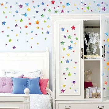 Amao Stars Wall Decals 123 Decals Wall Stickers Easy To Peel Stick Removable Home Decoration Gift For Bedroom Multi Color Stars Amazon Com
