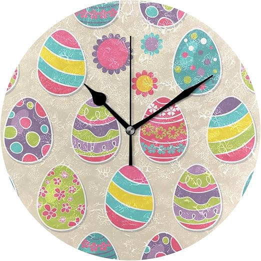 Amazon Com Nanmma Home Decoration Floral Eggs Print Decorative Wall Clocks For Indoor Outdoor Living Room Bedroom Decor 24cm Battery Operated Home Kitchen