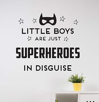 Amazon Com Superhero Wall Decal Boys Are Superheroes Black Vinyl Design For Home Decoration Child Room Decal Batman Mask And Starts Wall Decor Cg1211 28 Width By 26 Height Baby