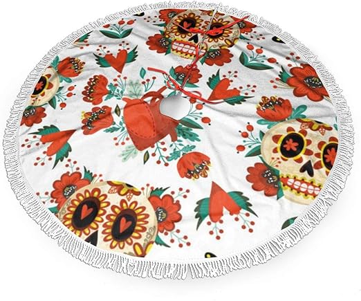 Amazon Com Ysolnhsi Skull Decorative Pattern Christmas Tree Skirt For Indoor Outdoor Festive Holiday Party Decor Home Decoration Home Kitchen