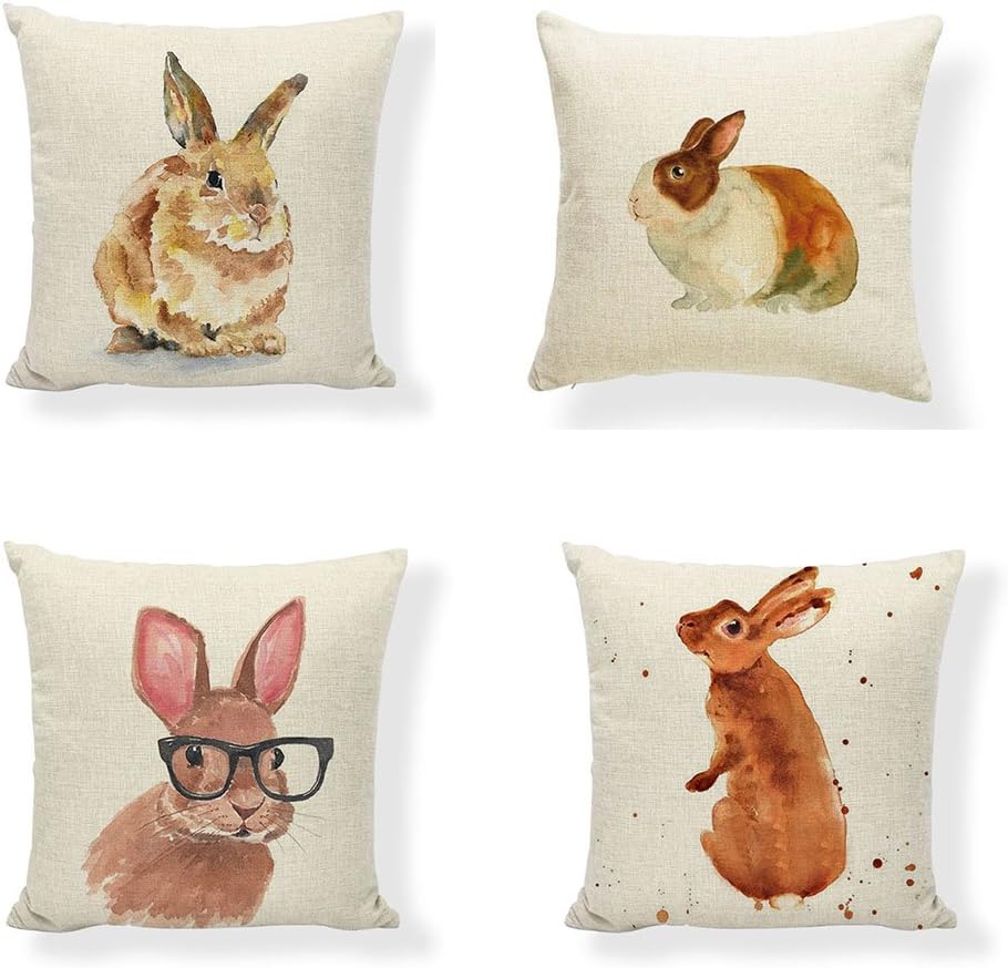Amazon Com Psdwets Easter Rabbit Home Decor Pillow Covers Set Of 4 Cotton Linen Cute Bunny Throw Pillow Case Cushion Cover 18 X 18 Home Kitchen