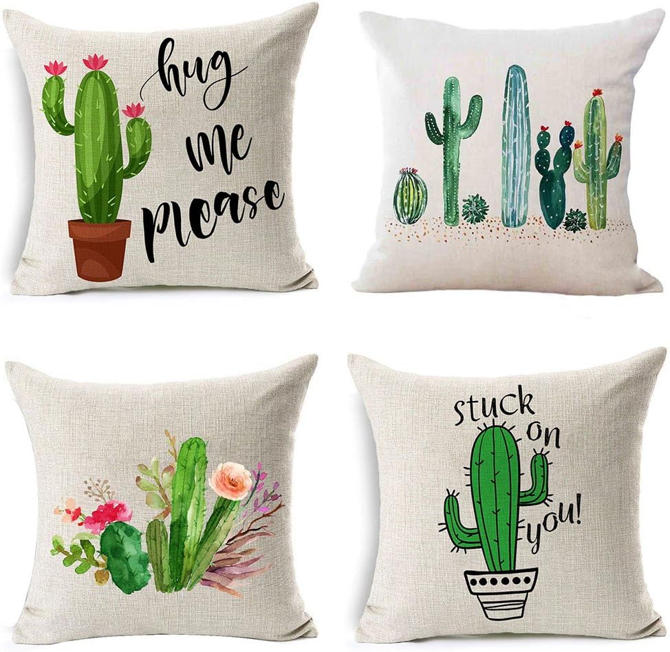 Amazon Com Psdwets Home Decor Summer Style Cactus Hug Me Please Pillow Covers Set Of 4 Cotton Linen Throw Pillow Case Cushion Cover 18 X 18 Funny Gifts Home Kitchen