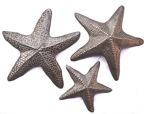 Amazon Com Starfish Set Of 3 Sea Life Nautical Home Decor Recycled Wall Art 8x8 And 5x5 Inches Haitian Decorative Plaque Everything Else