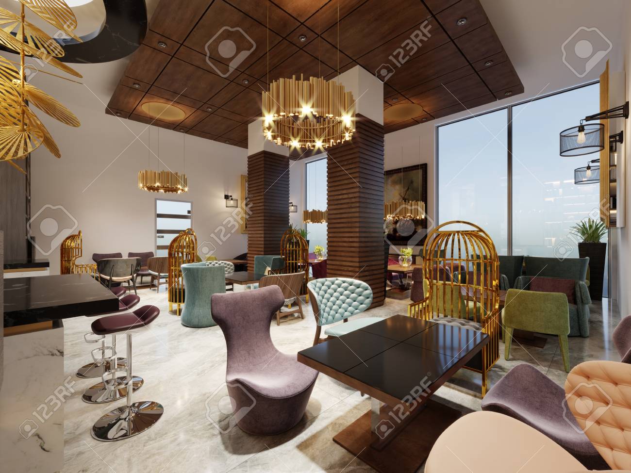 Luxury Modern European Design Cafe Interior Downtown Colorful Furniture Rendering Stock Photo C Kuprin33 228579618